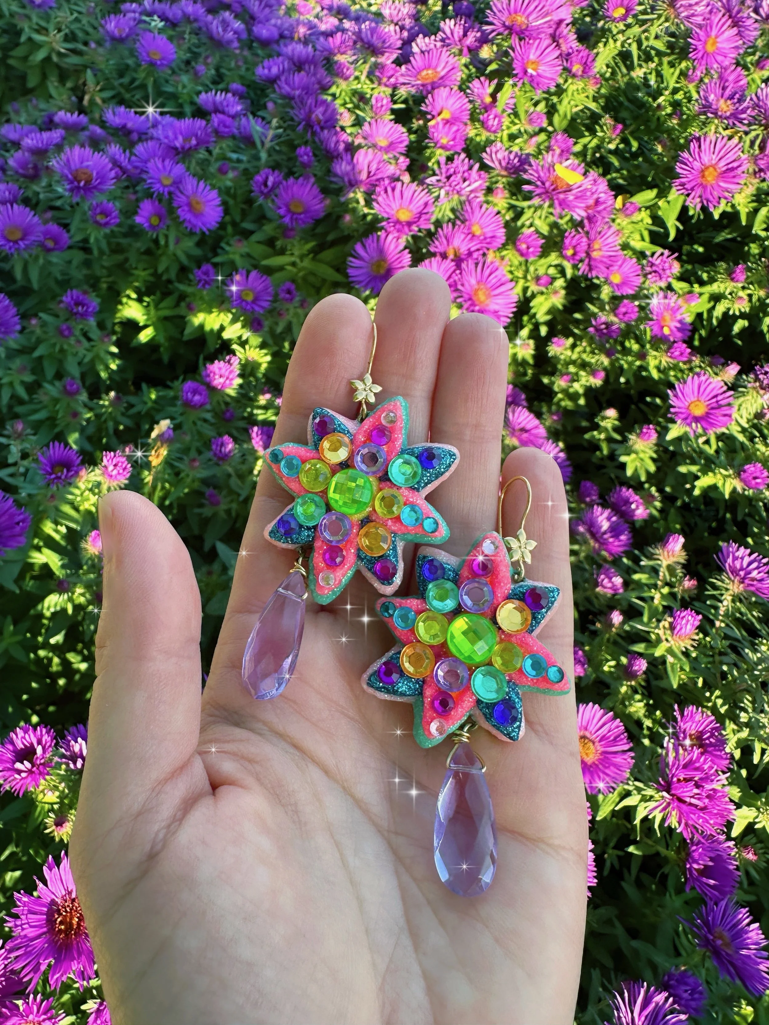 I grow each sparkling flower entirely by hand with lots of flower fairy magic ~ the most vibrant, magical petals are shimmering with endless glitter and rhinestones, all blossoming on beautiful silver and gold with crystals, gemstones and pearls so you can pick and wear each one and always have a piece of flower happiness with you anywhere you go.