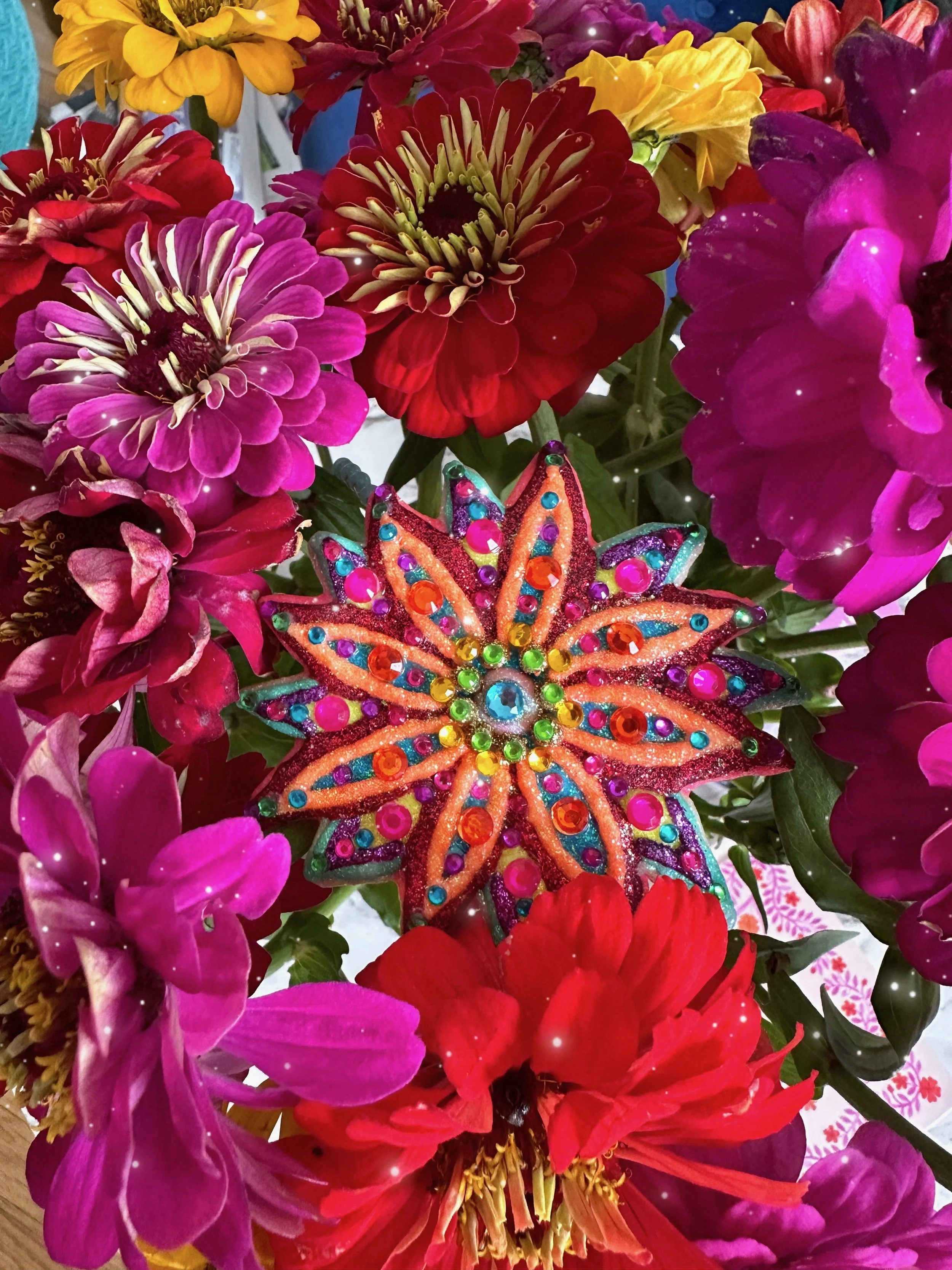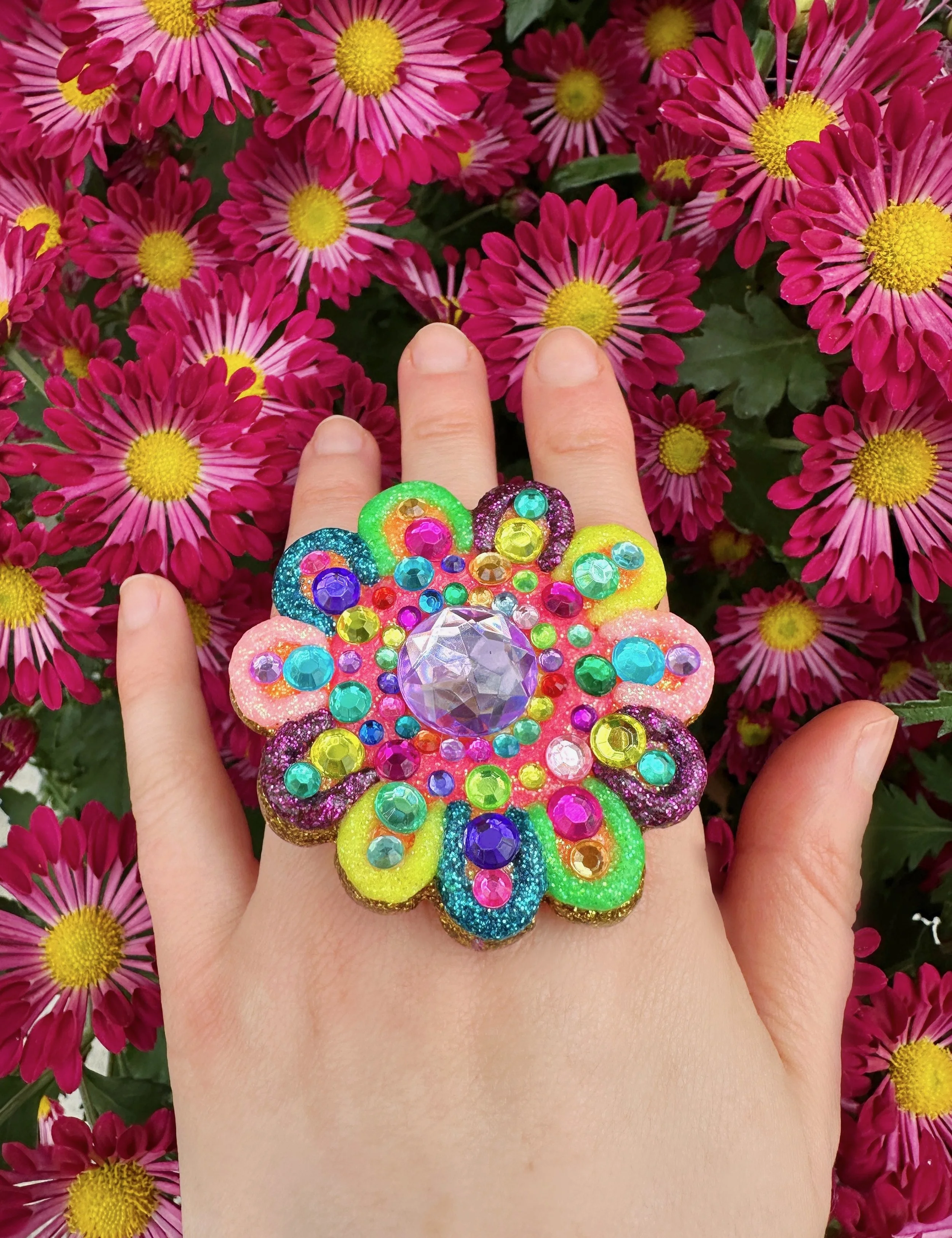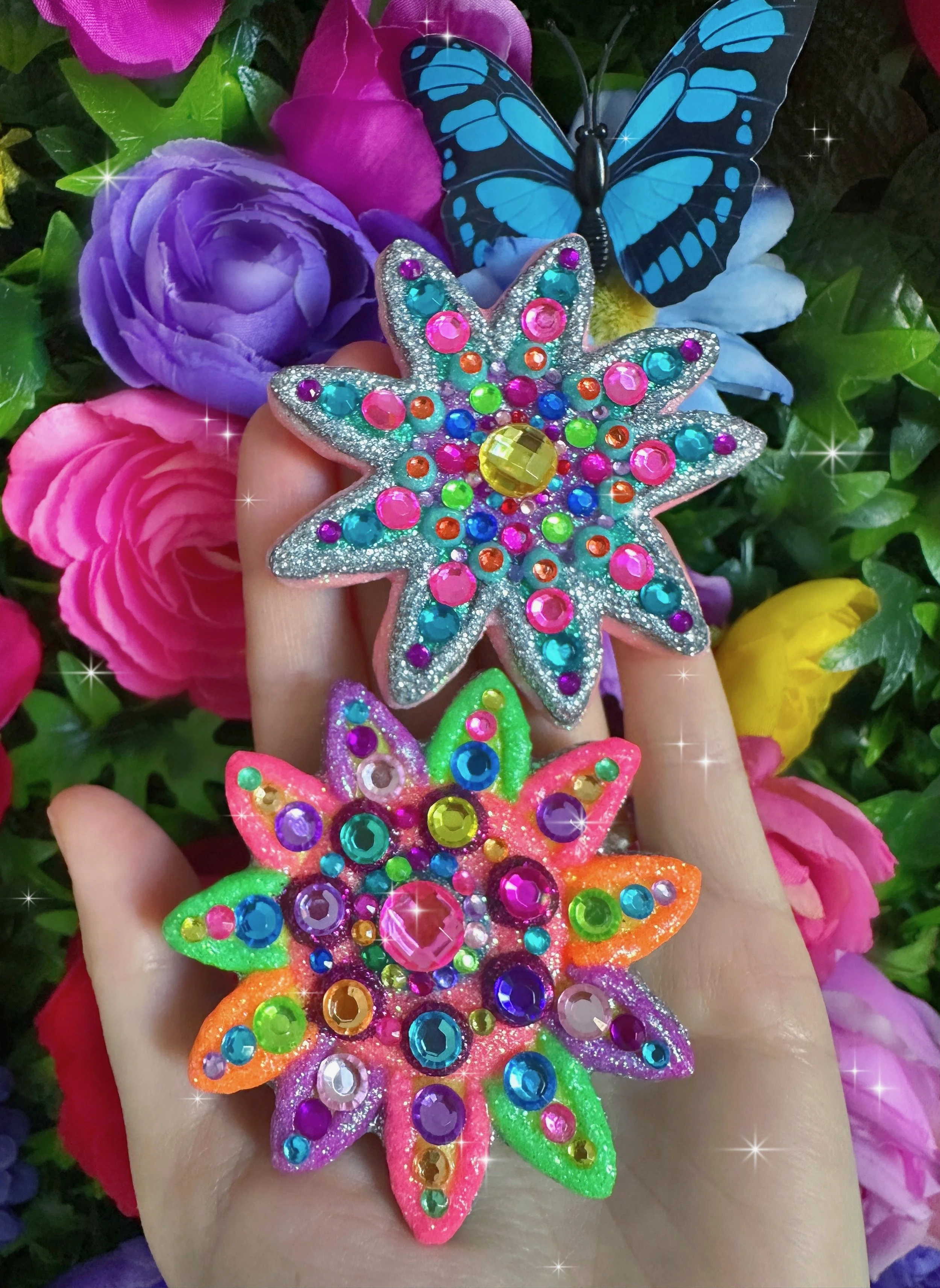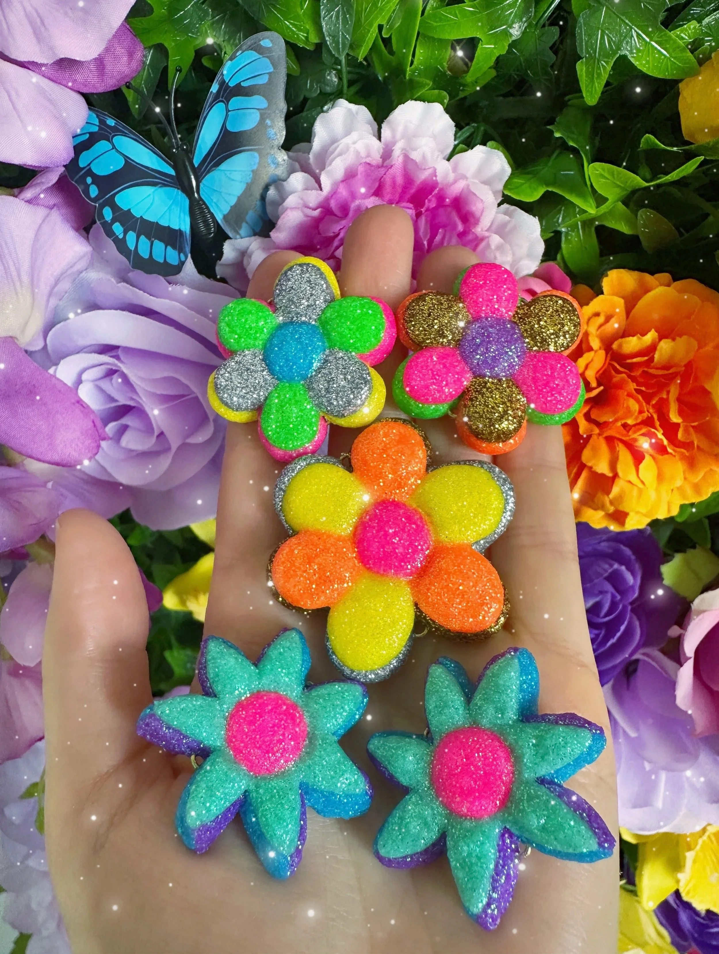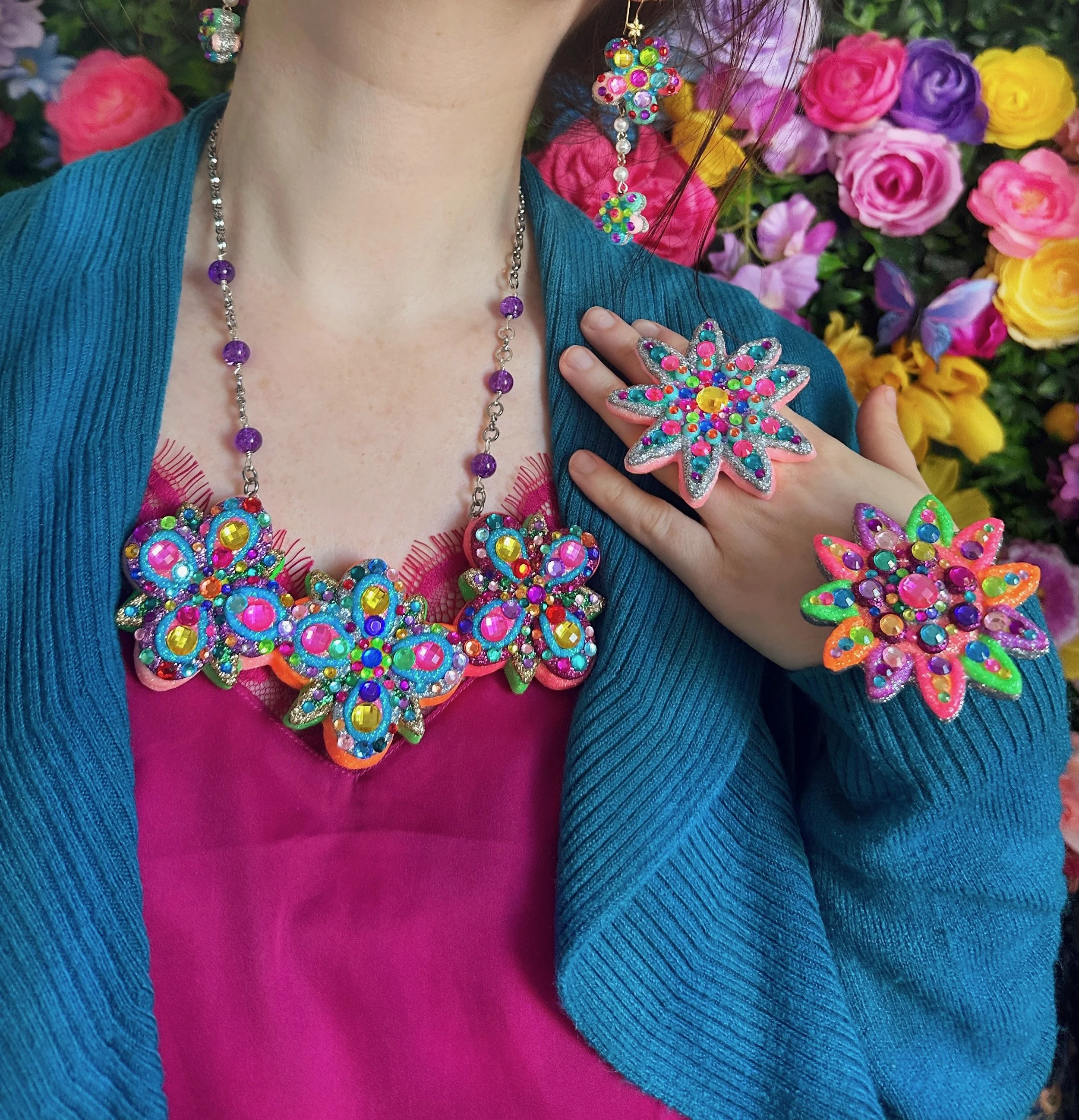 Glistening new flower necklaces and earrings are ready to adorn you with all the sparkly flower fairy magic! These flowers are full of endless rainbows, glittering fairy dust, the most colorful rhinestones and shimmering crystals, gemstones and pearls to brighten up your day and keep you sparkling everywhere you go! I hope these flowers bring you lots of joy and sunshine and remind you how bright and sparkly you truly are!
