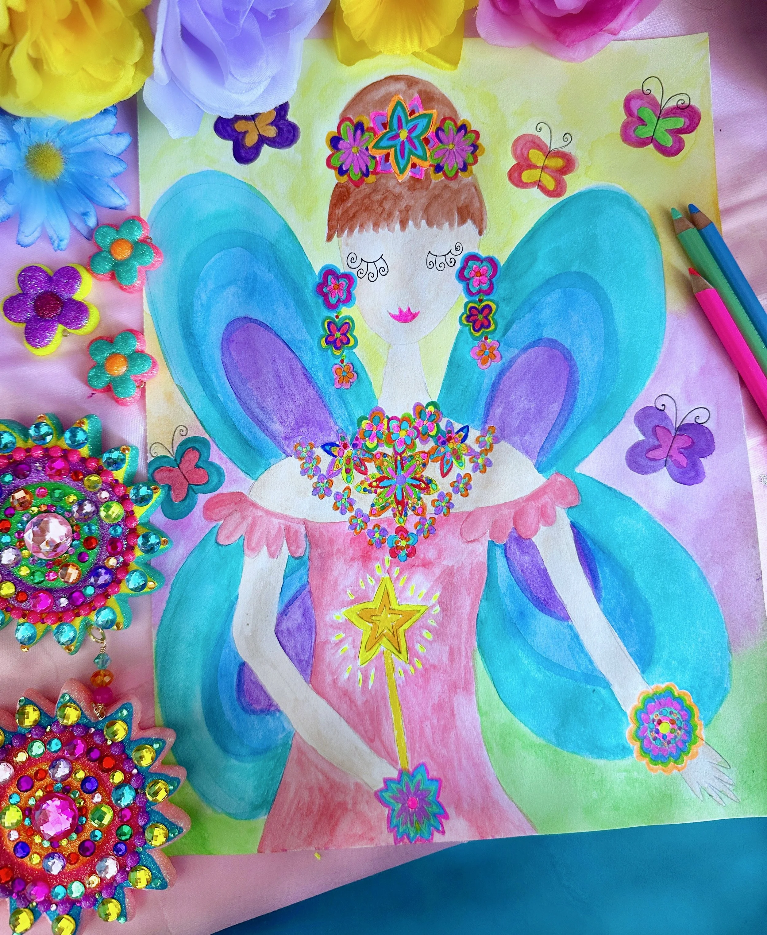 I will leave you with this magical flower fairy to wish you a happy, sparkling, colorful week ahead! I hope she brightens up your day and perhaps invites you to a magical summer fairy soiree!