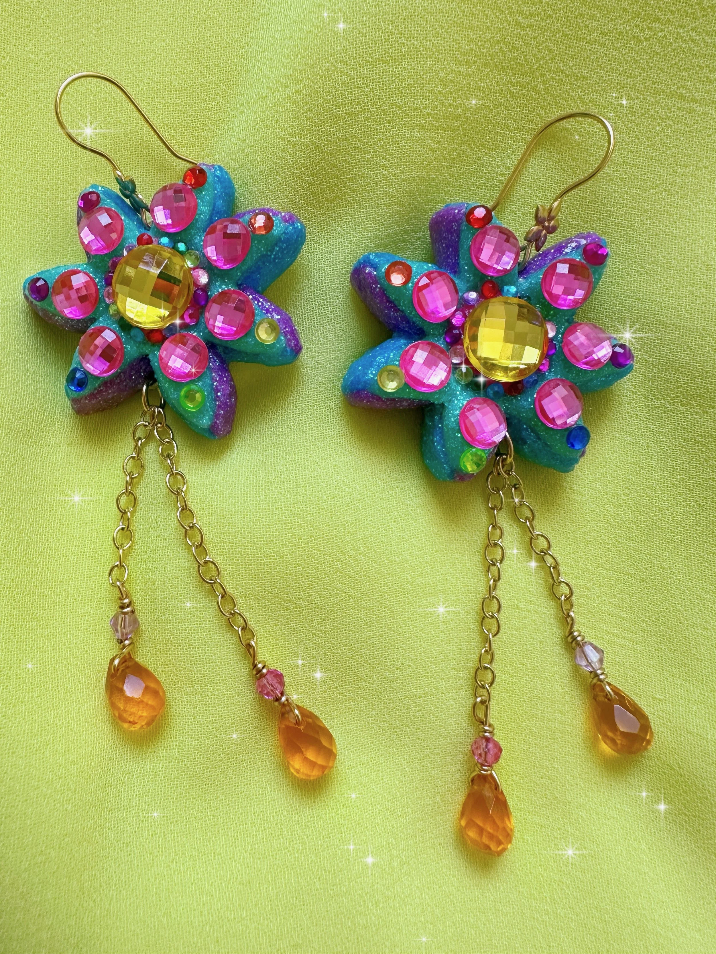 These shimmering earrings are one-of-a-kind and I grew them entirely by hand with lots of flower fairy magic ~ they will always and forever be in full bloom!